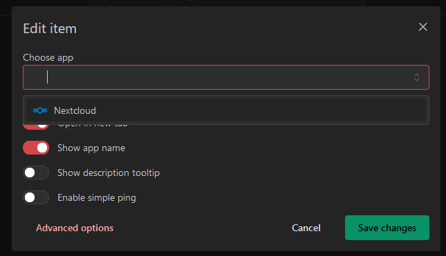 Screenshot of choosing the app item in the modal